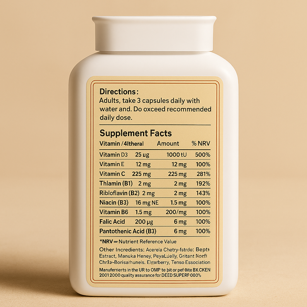 propolis, royal jelly, elderberry, ginger and bee pollen deliver a
